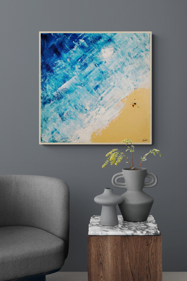 This original acrylic painting is the first piece in a captivating series that evokes a sense of freedom and escape. Its abstract composition invites the viewer to embrace the spirit of adventure and the untamed energy of the shore. Each brushstroke captures the essence of letting go and immersing oneself in the simplicity of nature, sparking a personal connection that extends beyond the canvas.